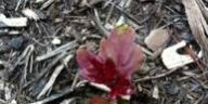 This Spring we noticed some vibrant, shiny, new red-leafed sprouts coming out of the ground in odd places around the extended perimeter of what had been the crabapple tree. They were actually beautiful … except that they interfered with the gardener’s plans and plantings in the reclaimed space under the tree.
